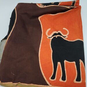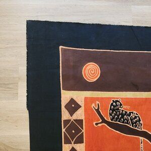 Batik Cotton Fabric Panel African Animal Tree of Life Safari Themed 80"x74"