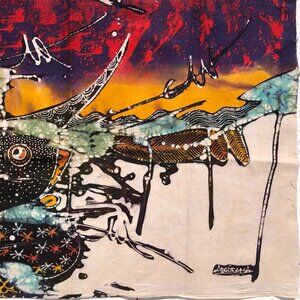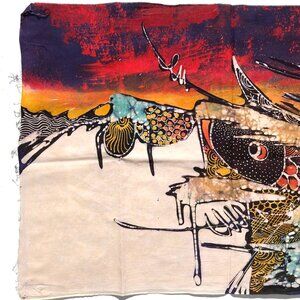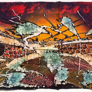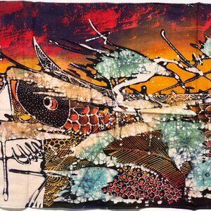 Batik Fabric Art Panel Koi fish hand painted artisan vintage long wall hanging.