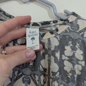 Top and panda pants in a cream, muted blue/green/grey batik pattern. The two pieces were bought together, and the top faded more for some reason. Bamboo fabric.