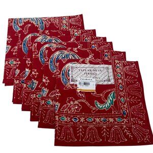 Batik Tablecloth and Napkins Red Cotton Rectangle 58x80 Boho Textiles