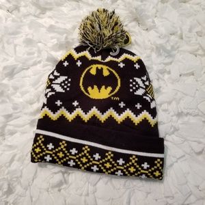Adorable Pom pom and Batman logo detail. very cute hat.