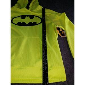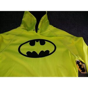This Batman DC Comics Thermal Fleece Hoodie in size L and acid yellow color, features a solid pattern. It's brand new with tags, perfect for animation enthusiasts.