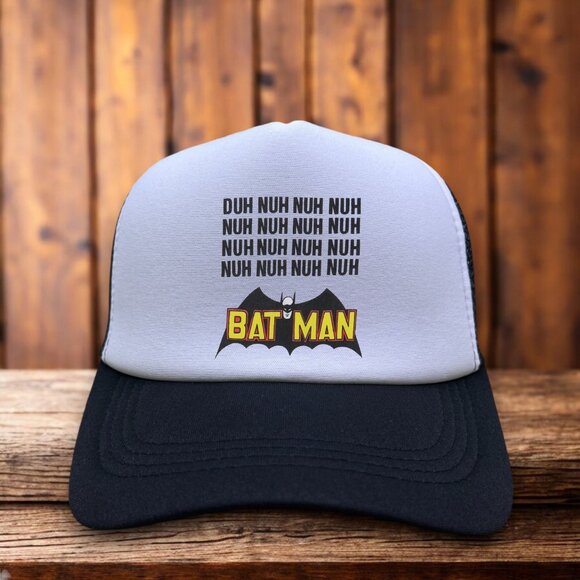 Batman Duh Nuh Nuh Nuh Mens Trucker Hat Black 1950s Logo Comic Superhero Cap