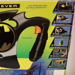 Hasbro Larami 1995 Batman Forever Super Soaker Gun With Belt And Buckle And 2 Water Bottle Refills. New In Box. Buyer will receive the exact one shown in my photos.