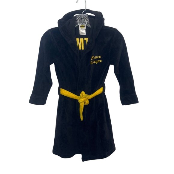 Batman Kids Hooded Bathrobe Boys Small Black Yellow Bruce Wayne Embroidery