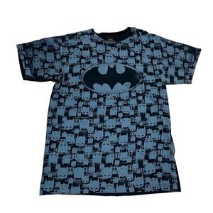 Batman Mens Blue Caped Crusader Bat Signal Allover Print Short Sleeve Tee Medium