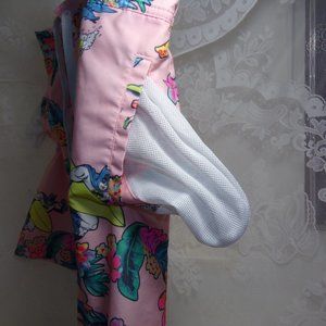 Feel like a superhero while catching waves in these Batman-themed swim trunks. The pink Hawaiian floral pattern adds a touch of tropical flair to your beach attire. Made from 100% polyester with a woven fabric type, these trunks have a comfortable elastic waist with a hook and loop and shoestring fastener. They have an inseam of 8.5 inches and a waist of 40 inches, making them perfect for regular-sized men. The swim bottom style is trunks and they feature built-in mesh brief lining, back elastic, and 2 side pockets and 1 back pocket. These trunks are machine washable and are the perfect choice for recreational surfing.