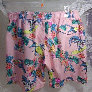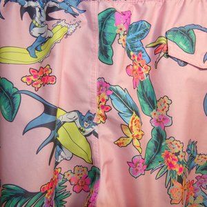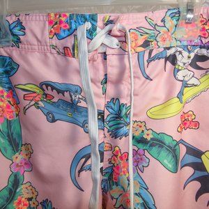 Batman Mesh Lined Swim Trunks Men's XL Pink Hawaiian Floral Surf Elastic Pre-own