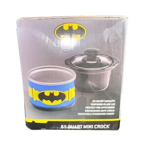Batman Mini Crock Pot Blue Yellow .65 Quart DC Comics Dishwasher Safe NIB
