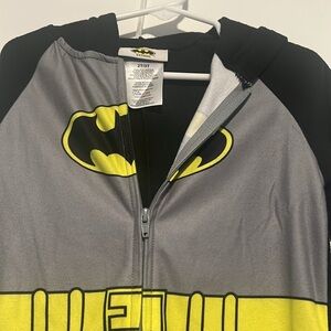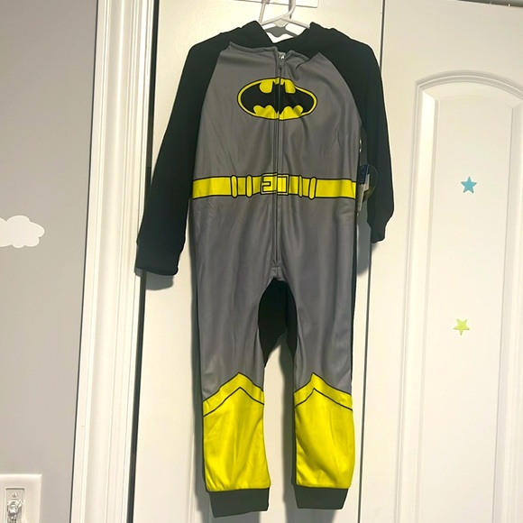 Zip up Batman PJs with hood. Soft fabric, new with tags, size 2-3T. Can be used as PJs, as a Halloween costume or layered on top of light clothing.