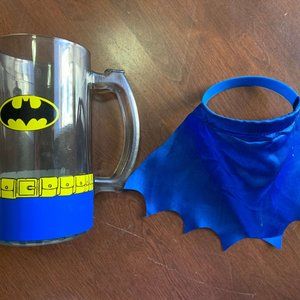 Batman Retro Logo Tall Glass Mug Cup with Cape DC Comics Comic Book collectable