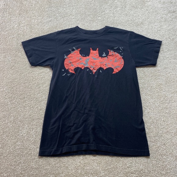 Keywords: Batman t-shirt, DC Comics shirt, Superhero graphic tee, Mens black t-shirt, Bat Symbol shirt, Comic book apparel, Short sleeve tee, Cotton t-shirt, Small size shirt, Licensed DC Comics, Gotham City, Mens casual wear, Fan merchandise, Movie t-shirt