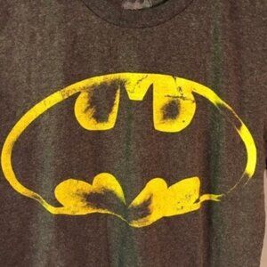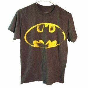 Great condition, graphic is purposely a little faded. Batman. T-shirt. Short sleeve. Crewneck. Dark gray with yellow bat symbol. Size small. 60% cotton, 40% polyester. Pit to pit laying flat 18” Shoulder to hem 26.5” Sleeve (pit to hem) 4”. All measurements are approximate and taken laying flat. Smoke free home.