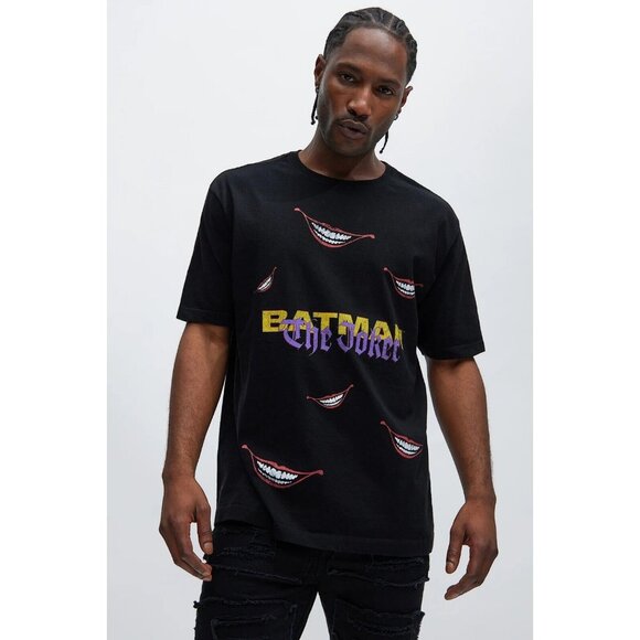 Introducing the Batman The Joker Short Sleeve Tee T-Shirt Movie, a must-have for all Batman fans. This black t-shirt is made from 100% cotton, ensuring comfort and durability. Featuring a smiley face design, this shirt adds a playful touch to your outfit. Show off your love for Batman and The Joker with this stylish and iconic t-shirt.