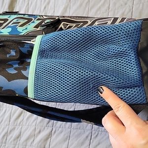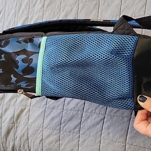 Cute batman backpack w interior pocket front pocket and cup holders on each side. Like new condition minus the one minor fray on the side cup holder. Picture is shown of this area. I think we used it for a couple weeks at most.