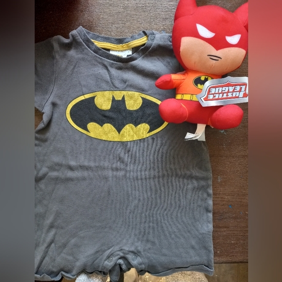excellent use condition Batman bundle when plushie with tag still attached the red Batman and a two-year-old short jumper