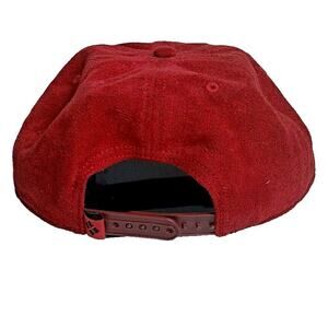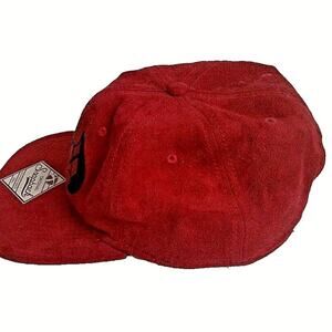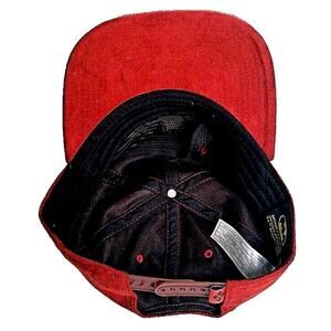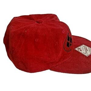 This is a Batman x Harley Quinn Snapback Hat. It is Red & Black and Faux Suede. There is a harlequin-style batman logo on the front and a diamond tag by the snapback. Sticker on the bill. No damages or defects. Sold as-is, ship bagged and boxed.