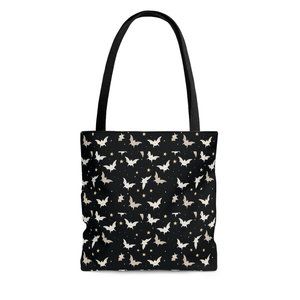 White Bats Tote Bags, Stars Totes, Canvas Tote Bag, Shopping Bag, Gift For Women Totes, Summer Gift, Every Day Bag, Halloween Bag, Spooky Tote Bag