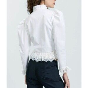 New with tags, Batsheva Grace Blouse Womens 8 White Button Ruffle Lace Puff Sleeves Romantic $225