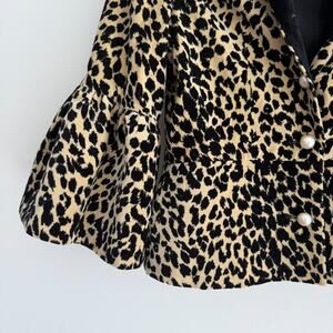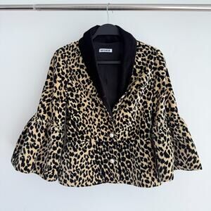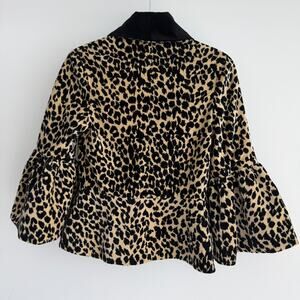 Batsheva Jacket Womens 2 Leopard Animal Print Bell Sleeves Velvet Artsy Cropped