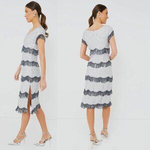 Batsheva NEW Octavia Cocktail Party Formal Midi Dress in Silver Sequin Size 6