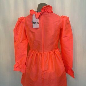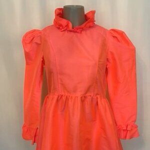 Batsheva Neon Sunset Pink Mini Long Sleeve Prairie Dress Size 10 Retails $400