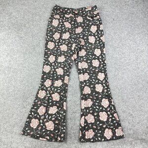 Batsheva Pants Womens 0 Gray Floral Flare Chinos Pockets City Boho Semi Sheer*. Condition is "Pre-owned"