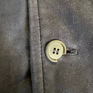 Please see pictures for flaws. The button holes are all raw. One cracked button. Shows some signs of wear. No size tag. Estimated to be XL-2XL