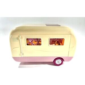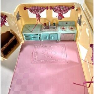 This is a pre-owned Happy Camper vehicle from the Li'l Woodzeez or Calico Critters line. Includes the camper onlyno figures or accessories. Features detailed molded design, opening doors, and rolling wheels. Great addition for imaginative play or as a replacement piece. Clean and in good used condition with minor wear from normal play.