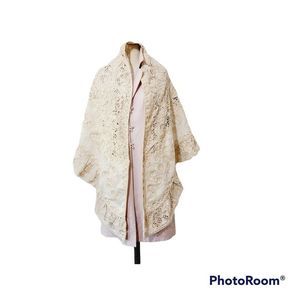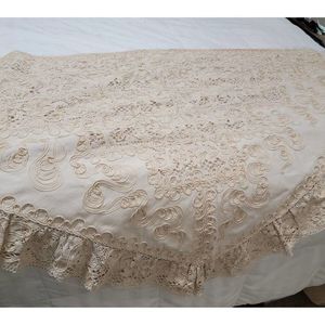 Battenberg on heavy cotton lace throw triangle shawl bed cover