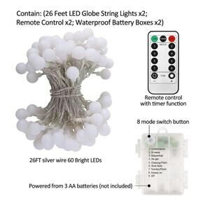 Tap Your Fingertips to Switch Modes: Controlled by remote control and powered from 3 AA batteries (not included) Led string lights with 8 lighting modes (Combination/in wave/sequential/slo glo/ flash/slow fade/ twinkle/steady ) to create a warm, joyful, romantic atmospheres. Different modes suitable for the different occasion.
