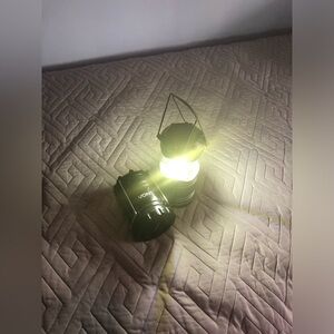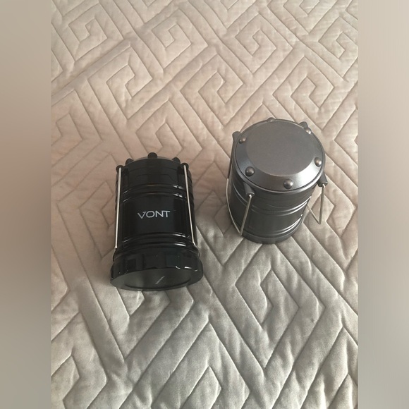 One gray one black battery powered led lanterns