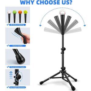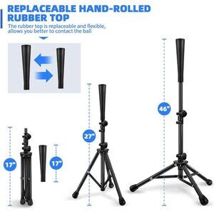 【Durable Tripod Stand Heavy Duty】This Baseball Batting Set includes 1 Black baseball tee for hitting+ 2 tee topper replacement+1 tee storage bag. The 3 pound weight and 6mm thick steel also give the batting tee extra stability.