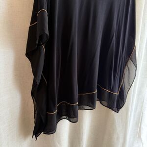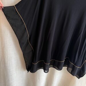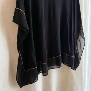 Jennifer Lopez Black Ruffle Blouse | M | Sheer Hem Gold Bead Trim Flutter Sleeve Poncho