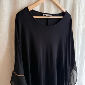 Batwing Cape Sleeve Poncho Blouse Black Ruffle Size M Flowy Top Jennifer Lopez