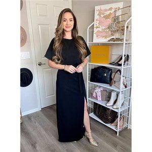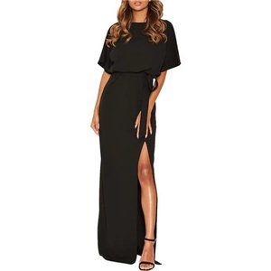 Batwing Sleeve Waist Belted High Slit Long Maxi Dresses Evening Gown For Women