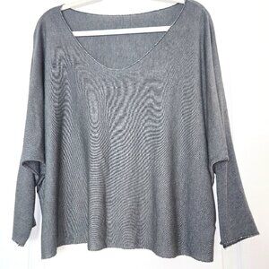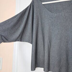 Batwing long sleeve oversized top in grey with metallic overlock seam, M. Made in Italy
