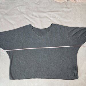 Batwing long sleeve oversized top in grey with metallic overlock seam