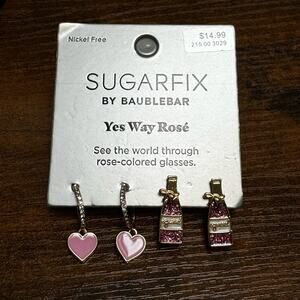 BaubleBar Earrings 'Pink Yes Way Rose' Crystal 2 Pairs SugarFix NWT Champagne