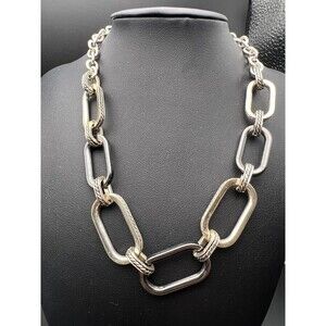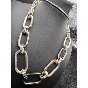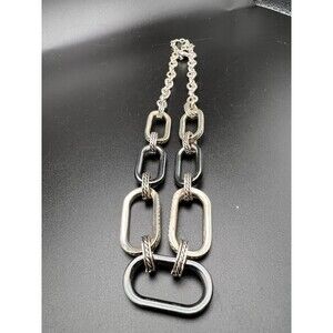 BaubleBar elongated link necklace with mixes of braided details and matte grey.