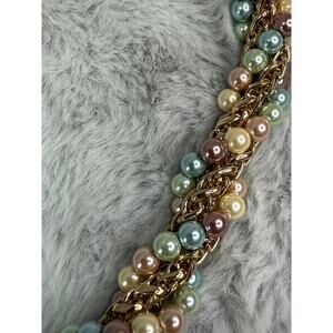 BaubleBar Pastel Faux Pearl Gold Chain Braided Statement Necklace 19"