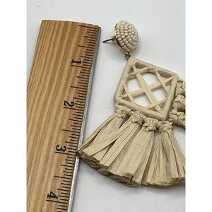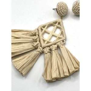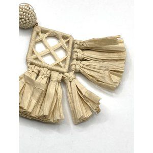 BaubleBar‎ SAHARI RAFFIA Drop Fringe Boho Long 3.5" Tan Earrings NWOT