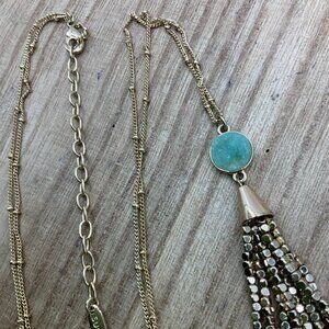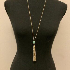 BaubleBar Sugarfix Turquoise Druzy Stone Gold Tone Tassel Chain Necklace