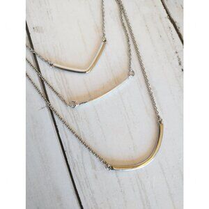 BaubleBar Triple Linear Pendant Necklace Silvertone Jewelry Minimalist Preppy