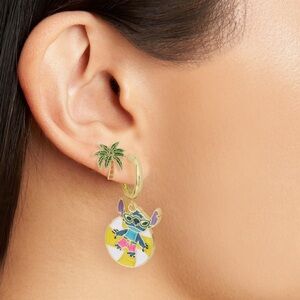 Sunbathe and relax during your vacation days with these Stitch hoop earrings paired with palm-tree-shaped stud earrings.