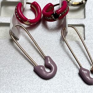 Middle pair: Hot Pink/Gold/Diamond small hoops