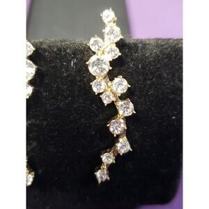 Baublebar Signed Farah Ear Crawlers Climbers, Gold Tone with clear rhinestones. These are very pretty climber crawler earrings by Baublebar. They are in gold tone metal with crystal clear rhinestones. They are about 1.5 inches long in a sort of swirled wsve pattern. These are pre-owned and may have minor wear, but are still in good condition.