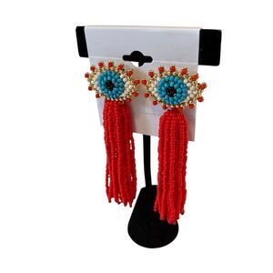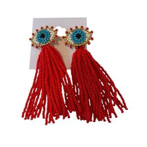 Baublebar Beaded Evil Eye Red Tassel Earrings. Super Fun!