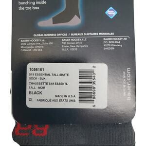 Bauer S19 Essential Tall Skate Socks XL/TG Size 10.5-13 SR Black New Ice Hockey