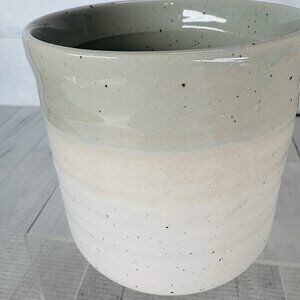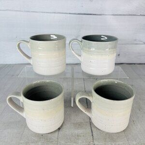 Baum Brothers HEARTH Seafoam Sponge Speckle Beige 15oz Stoneware Cups Mugs Set 4